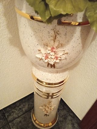 Columna Macetero Cerámica Flores Doradas