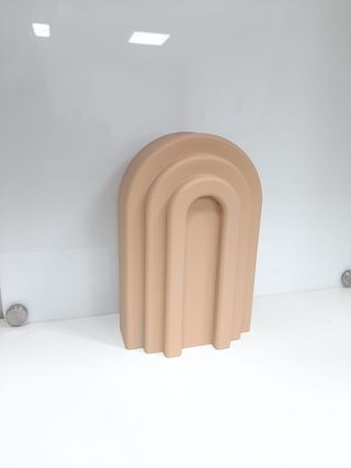 Jarrón decorativo con un diseño moderno en forma de arcoíris. Aporta un toque de estilo a cualquier espacio. - Acabado en cerámica. - Tonos beige y dorado.