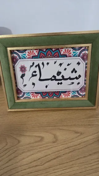 Cuadros por encargo en cualquier idioma, fondo Bohemio, marco de madera dorado, destacando otro marco vestido de terciopelo, que le da un toque de elegancia