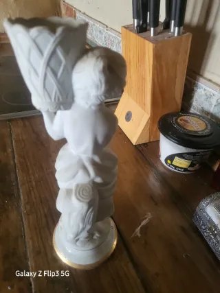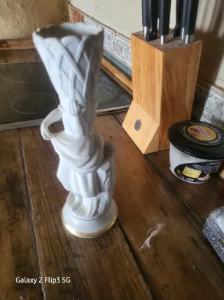 Elegante figura decorativa con detalles en dorado y blanco. - Fabricada en cerámica y porcelana. - Diseño intrincado y detallado.