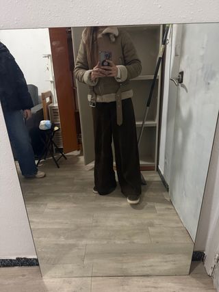 Espejo grande. Tiene la esquina un poco rota pero con un marco quedara perfecto, incluso sin él si te da igual, la utilidad sigue intacta... Tiene algunas picadas pero que de lejos (como te mirarias al espejo) ni se aprecian.