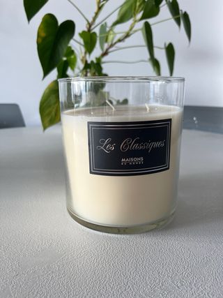 Vela aromática de gran tamaño de la marca Maisons du Monde. 800g - Diseño elegante en cristal transparente. - Color beige de la cera. Precio original: 19,99€ SIN ESTRENAR Nos mudamos. Artículos nuevos y semi nuevos a buen precio. Descubre más en nuestro perfil. No realizamos envíos.