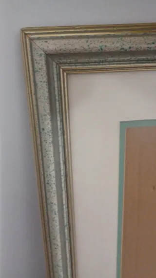 Marco de grandes dimensiones con un diseño elegante. - Medidas: 93 x 40 cm. - Acabado en tonos verde y beige