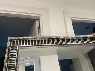 Elegante espejo con un marco decorativo en tonos plata y negro. está en su caja sin poner - Medidas: 78 cm de ancho x 180 cm de alto. - Marco con diseño detallado. - Se vende por ser demasiado grande para el espacio.
