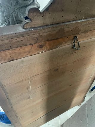 Espejo antiguo de madera maciza tallada – pieza decorativa con mucho carácter 🪞 Precioso espejo antiguo con marco de madera maciza ricamente tallado a mano, con motivos clásicos y copete superior ornamental que le da una presencia espectacular. Una pieza auténtica, ideal para decoración vintage, rústica o casas con encanto. El cristal es original, con la pátina del tiempo que le aporta ese efecto antiguo tan buscado (ligeras marcas y oscurecidos naturales que no afectan a su uso y le dan personalidad). La madera muestra señales normales de antigüedad (pequeños orificios visibles típicos de muebles antiguos), lo que confirma su auten