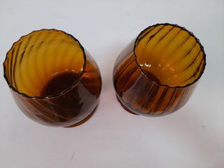 Elegantes copas decorativas de cristal con un diseño vintage de la década de los 70. Presentan un diseño de copa grande o copón con una base y borde ondulado. Un artículo tiene un diseño de remolino, mientras que el otro tiene un patrón acanalado vertical. Se describen como piezas de decoración o centros de mesa.