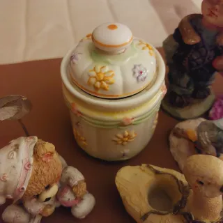 Conjunto de catorce figuras decorativas vintage, el azucarero más grande es muy antiguo, 2 saleros de Talavera y figuras surtidas de diferentes décadas, todo el lote por 3 euros - Piezas elaboradas en cerámica y porcelana. - Diseños variados con múltiples colores.