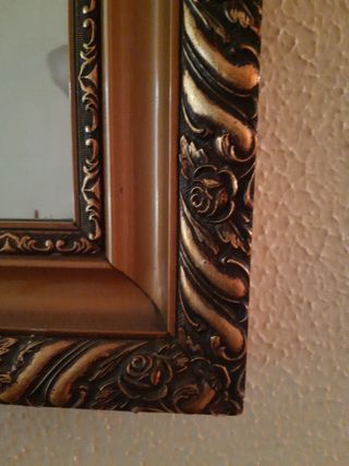 Precioso espejo de pared con un marco clásico en tonos marrón y plata. Es de gran tamaño, ideal para un espacio amplio. - Medidas: 194 cm de alto. - Marco de madera y cristal. Está en perfecto estado, se vende por mudanza.