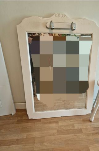 Elegante espejo vintage con un diseño único. - Marco de madera con detalles decorativos. - Cristal de espejo de alta calidad. - Color beige y blanco.no tiene marca del fabricante es de los años 60 se vende por tener otro más grande y no lo usamos mide de alto 1.10 centímetros de ancho mide 95 centímetros