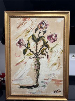 Precioso cuadro al óleo vintage año 67, con un ramo de flores. Grande 82cm X 59cm, firmado y fechado D.Ibars 14-04-67 Alegre y decorativo. - Pintura al óleo. - Marco de madera dorado. - Motivo floral.
