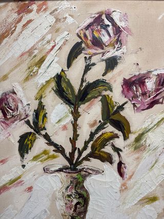 Cuadro óleo sobre lienzo y bastidor. En perfecto estado. Medidas: 100x100x4 cm No se hacen envíos. # Ikea deco decoración vintage maisons du monde hogar salón arte flores grises nórdico
