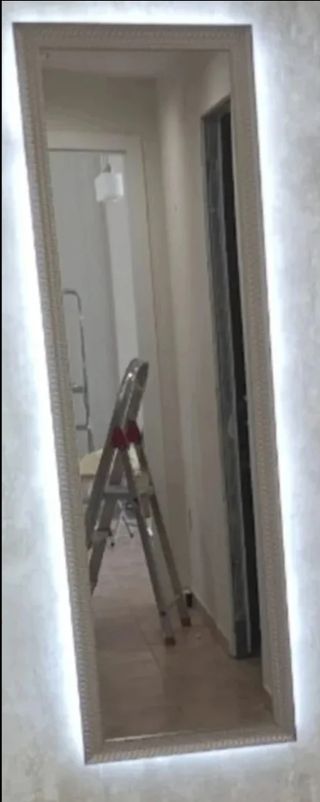 Elegante espejo de cuerpo entero con un marco decorativo. PRECIO REBAJADO NO NEGOCIABLE SIN REGATEOS, NO ACEPTO CAMBIOS ESPEJO PASILLO GRANDE CON lUZ LED ALREDEDOR DEL ESPEJO 1.60 m alto 50 cm ancho PARA SALÓN O PASILLO se entrega en mano en ubrique, podría entregar en arcos, bornos, prado del rey, villamartin, jedula, jerez,puerto real, el bosque, el puerto santa maria previa señal Decoración home led LUCES salón