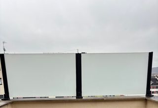 Paneles separadores de cristal translúcido para balcón o terraza. Proporciona privacidad y delimita espacios. 2 medidas distintas, 2 paneles pequeños 2’03m 4 paneles grandes 5’87m Se venden por separado si desea. Incluyen los postes color antracita. Consultar precios. No se envía.
