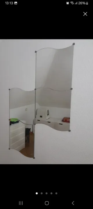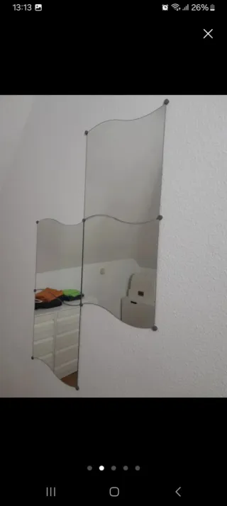 Conjunto de 8 espejos decorativos Krabb de Ikea. Su diseño ondulado aporta un toque moderno y original a cualquier pared. Piezas individuales que permiten crear composiciones personalizadas con anclajes a la pared. 8 espejos - 10€ 4 espejos - 5€