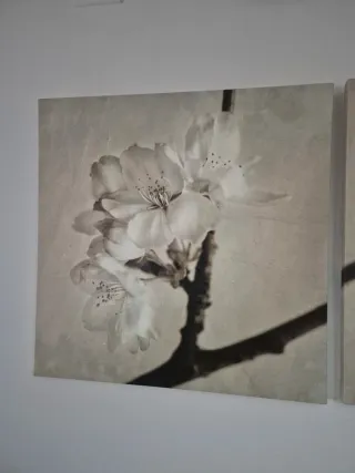 Conjunto de tres cuadros decorativos con un diseño de flores de cerezo. - Impresión sobre papel de alta calidad. - Montados sobre bastidor de madera.