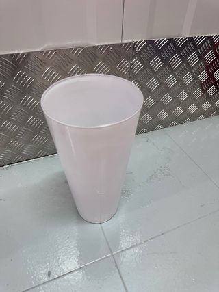 Elegante jarrón de Ikea en color blanco. Su diseño cónico lo hace un complemento decorativo ideal. - Material: Plástico. - Acabado liso y brillante.