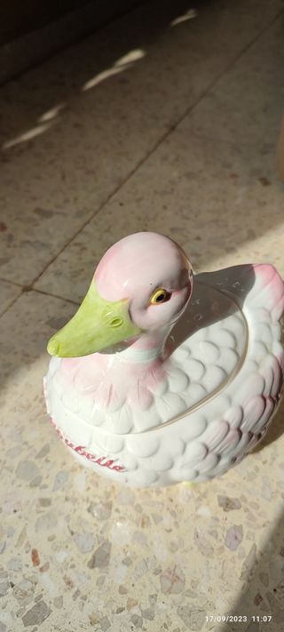 Figura en forma de pato, figura antigua, es como tipo joyero se pueden guardar pequeñas cosas en el interior.