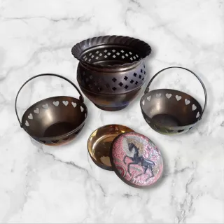 Pebetero, Cestas y Joyero de Latón