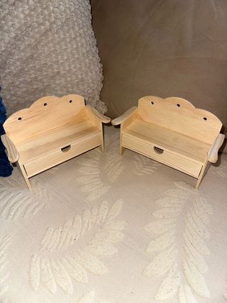 2 Banquitos de madera con cajón Joyero Decoración