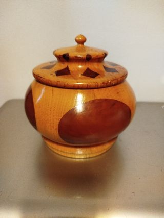 joyero decorativo de madera , realizado por experto artesano ebanista,único. altura 20 cm. diámetro 45 cm.
