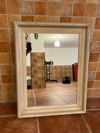 Este espejo decorativo tiene un diseño único que añade amplitud y un toque especial a cualquier espacio. Su marco presenta un acabado desgastado que le da un aire vintage, envejecido. - Marco con acabado desgastado. - Diseño de puerta. Lo vendo porque ampliaremos el baño y desaparece el espacio donde lo tenemos.
