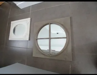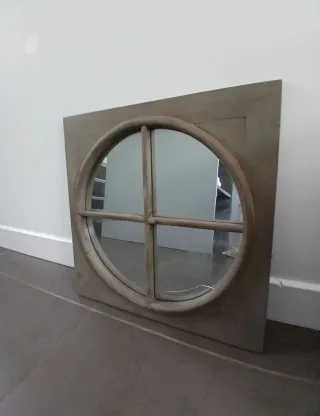 Precioso espejo decorativo de Maison du Monde con un diseño único. Comprado en Francia. - Marco cuadrado con acabado grisáceo. - Espejo interior circular con divisiones. Tiene un desperfecto que se ve en detalle en una de las fotos. De ahí el precio. Se recoge en mano en Madrid.