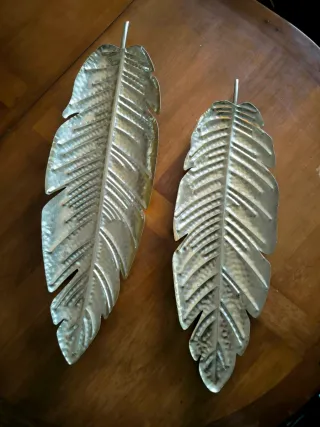 Set de dos bandejas decorativas con forma de hoja. - Material: metal - Acabado: dorado y negro mate - Dimensiones: aprox. 70 y 60cm de largo - Marca: Maison du monde