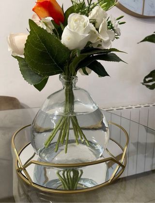 jarrón de vidrio *No incluye ni bandeja ni flores*