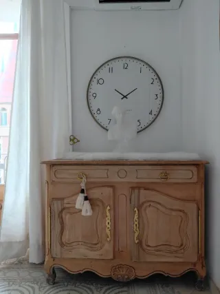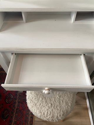 Elegante tocador blanco con un diseño clásico y un espejo ovalado. - Acabado en blanco. - Espejo con marco. - Cajón con tirador en forma de corazón. endo este bonito tocador de la marca Maison du Monde, del que ya no tengo necesidad. Necesita una mano de pintura porque tiene algunas marcas tras la mudanza (fotos). Consta de dos partes (mesa y espejo + cajones). Ancho: 70 cm. Profundidad: 40 cm. Altura de la mesa: 75 cm. Altura con espejo: 140 cm