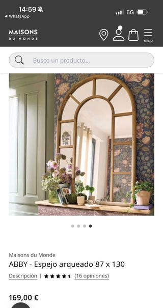 Espejo arqueado de Maison du Monde, modelo ABBY. - Medidas: 87 x 130 cm. - Diseño con marco de madera y detalles segmentados. - Está nuevo sin estrenar