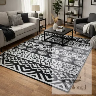 Alfombra de exterior o interior con un llamativo diseño geométrico en blanco y negro. Ideal para dar un toque moderno a tu terraza o jardín. Se puede lavar con un trapo húmedo y sacudir, ideal para alérgicos o personas con mascotas, no absorbe líquidos ni polvo. Resistente a la lluvia, sol... - Medidas: 150 x 200 cm. - Diseño: Étnico. - Apta para exterior. NUEVA A ESTRENAR. Varias unidades disponibles. Hago envíos. Estilo La maison du monde y Zara home y A loja do gato preto y Muymucho Cristina Oria Ikea Casa La Oca.