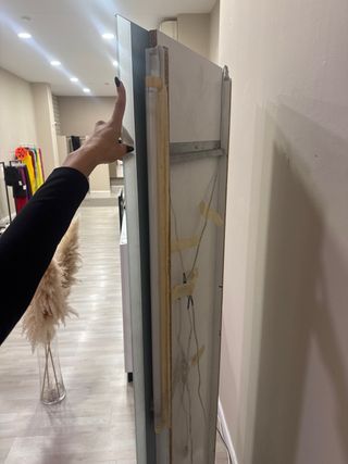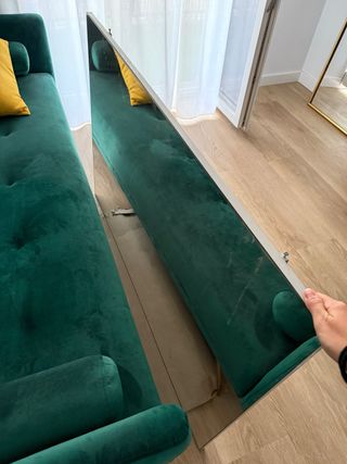 Elegante espejo decorativo con un diseño moderno. Son dos espejos juntos de 122x81cm. Uno de ellos tiene una esquina un poco rota. Se puede comprar uno o los dos juntos. Cada uno 80 euros. Por los dos 150 euros.