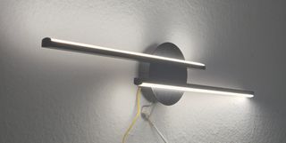 Elegante aplique de pared con diseño moderno, ideal para iluminar espejos de baño. - Resistente a la humedad tiene un grado de protección IP 44. - Temperatura de color 4000k. - Longitud de 55 cm. - Acabado en negro y plateado. - Fabricado en metal y cristal.