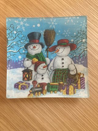 Precioso plato decorativo navideño de cristal con un diseño de familia de muñecos de nieve. Ideal para decorar tu mesa en estas fiestas. - Perfecto estado. - Diseño invernal con muñecos de nieve. - Medidas: 10x10 cm aproximadamente.