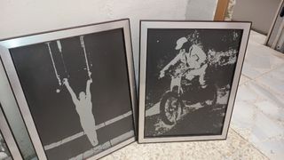 Laminas enmarcadas de deporte.plateados brillantes.en la foto nos e aprecia todos por 25€ unidad suelta a 8 Son muy originales