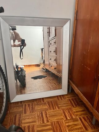 Elegante espejo con un diseño moderno que aportará un toque de estilo a cualquier estancia. - Marco de metal en color plateado y blanco. - Cristal de alta calidad.