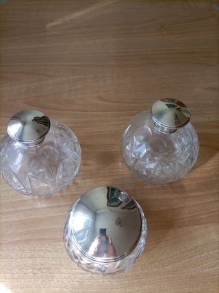 Joyero y perfumero Cristal tallado y plata.