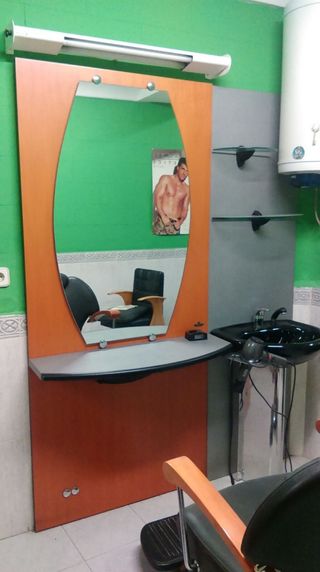 Se vende tocador de barbería de diseño clásico y robusto, fabricado en madera de pino maciza de alta calidad. Está cuidadosamente tintado y barnizado, lo que le otorga un acabado elegante y duradero. Incluye dos amplios espejos de gran tamaño, 5 cajones espaciosos para almacenar todo lo necesario. Además, cuenta con un aplique de luz centrado entre los dos espejos, el cual proporciona una bonita iluminación decorativa para resaltar su belleza. Tiene unos ligeros piquetes en la encimera debido a su uso, pero está en muy buen estado y listo para usar. Ideal para barberías o salones que busquen un toque rústico y funcional. ¡No dejes pasar esta oportunidad! Medidas: Barra 300x50x19 Espejos 110 alto X 150 ancho X 3