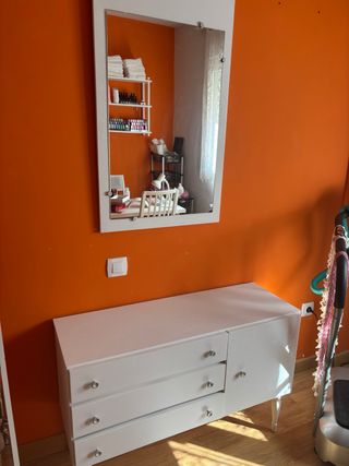 Tocador de mueble con espejo. - Diseño moderno y funcional. - Acabado en blanco.