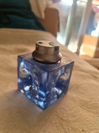 Cristal Murano azul Italia años 70 Encendedor con efecto de lupa Diseño Antonio Imperatone Fabricación artesanal Veneciana Perfecto estado de conservación