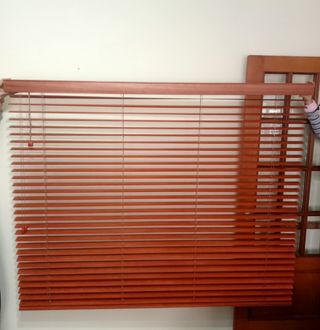 Dos venecianas de madera. En muy buen estado. Medidas: Ancho. 71cm. Largo. 240cm. Ancho de lama. 5cm. Muy ligeras. Incluye sujecciones para pared/techo y envellecedor para ocultar el soporte de la propia veneciana.