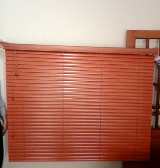 Véndese 1 veneciana de aluminio cor vermella, mesmo modelo que o vendido en Amazon (ref. B00MHXEZK4). Medidas: 130 × 130 cm. Está en bo estado xeral e o mecanismo de subida e baixada funciona correctamente. ⚠️ Detalle: Fáltalle a barra para regular a apertura das láminas (a que tiña está rota). 👉 A barra pódese mercar facilmente por separado en Amazon ou en tendas de repostos. Ideal para habitación, despacho ou como reposto.