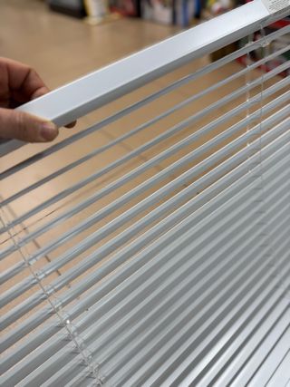 una persiana veneciana de plástico, color azul. Son ideales para regular la luz en cualquier habitación. - Miden aproximadamente 1 metro de ancho. - Están en buen estado.
