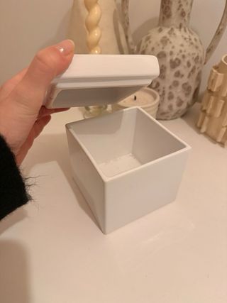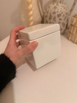 Elegante caja de Zara Home, perfecta para almacenar pequeños objetos o como elemento decorativo. - Diseño cúbico moderno. - Acabado blanco liso.