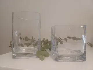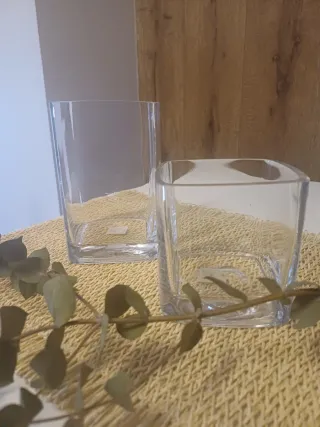 Juego de dos jarrones de cristal con un diseño moderno y elegante. Aportan un toque de estilo a cualquier espacio. Dos tamaños de alturas diferentes. Transparentes, ideales para decoración interior, velas, flores,... Medidas: 1) 10x10 altura 15 cm. 2) 10x10 altura 10 cm. Zara Home Gato Preto Maison du Monde Leroy Merlín Banak Ikea Westwing El Corte Inglés La Redoute Hábitat Hannun Kenay Home sklum nissedal Kallax Hogar Antigüedades Colección Restauración Vintage Casona Scandi wabi atrezzo deco tendencia decor midcentury estilo Nórdico Industrial neoclasico Colonial Rústico Provenzal Retro Illinois
