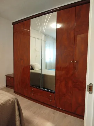 Armario de madera con puertas de espejo