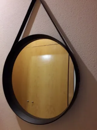 Elegante espejo redondo con un diseño moderno. Con la caja esta totalmente nuevo - Marco negro. - Colgador negro. - Cristal de espejo.