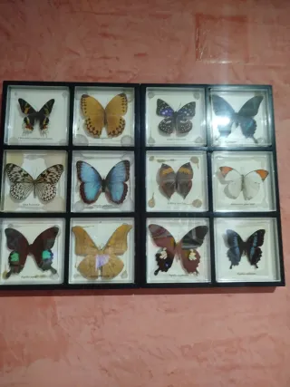 Colección de cuadros con mariposas reales, presentadas en marcos individuales. Los vendo sueltos a 40 euros si se llevan los 4 los dejo a 120euros - Mariposas de diferentes especies y colores. - Marcos con base de madera y cubierta de plástico. - Ideal para coleccionistas o decoración.