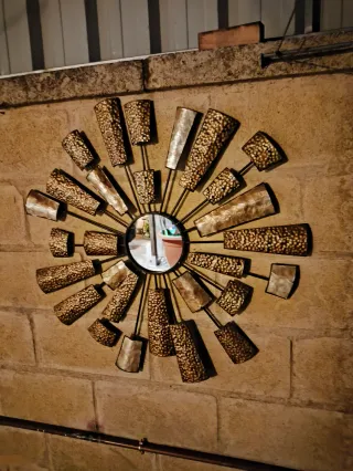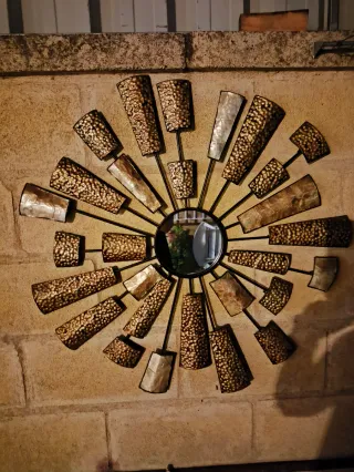 Impresionante espejo decorativo con un diseño clásico en forma de abanico. Una pieza ideal para dar un toque de elegancia vintage, clásico o andaluz a cualquier estancia: salón, dormitorio, o entrada. ¡No dejes escapar esta pieza única de decoración vintage! - Marco: Detallado marco de metal con acabado en dorado envejecido. Aspecto antiguo garantizado. - Espejo: Cristal en perfecto estado, con sutiles grabados decorativos. - Estilo: Muy elegante, con un diseño que imita un abanico plegado. PRECIO: 40€ (Negociable)