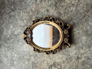 Preciosa pieza vintage. Ideal para amantes de artículos retro. - Espejo de metal con diseño de mujer. - Perfecto estado de conservación. - Diámetro aproximado de 15 cm. -Articulo original.